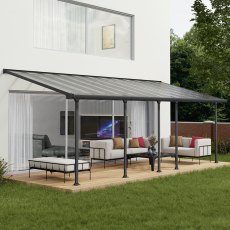 Versatile in its design, the 10 x 24 (3.00m x 7.30m) Palram Canopia Feria Patio Cover White With Clear Panels can be easily personalised for use as a patio cover, sun lounge or carport. Its simplistic design will fit neatly onto the side of your house, offering a fashionable and easy way to expand your living space and have more opportunity to socialise with your loved ones. Built with you in mind, the Feria patio cover protects you and your valuables from the weather and harmful UV rays.