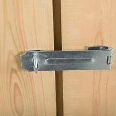 The double doors have turn buttons on one side to keep it closed as required and a plate hasp and staple latch on the other side which can be locked with a padlock (not included).