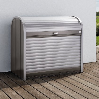 The Biohort Alex Single Wheelie Bin Store delivers contemporary outdoor style with unmatched durability. Designed to discreetly conceal one 120L or 240L bin, it’s a secure, rainproof, and maintenance-free solution built from premium galvanised steel. Complete with an organiser system, functional perimeter floor frame, and clever catch bar, it brings order and refinement to everyday waste storage. The key features include: