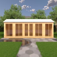 The 20 x 6 Mayfield Summerhouse is a large garden building with lots of space for the whole family to enjoy. Multiple windows, a reverse apex roof, and a large footprint make this a versatile wooden summerhouse. The key features include: