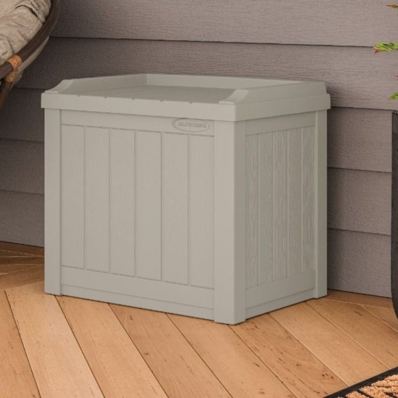 The Suncast Florida 83L Outdoor Storage Box in Light Taupe is compact plastic garden storage, ideal for keeping patio cushions and other garden items tidy and dry. It also includes a handy seat on the lid for extra seating. Top features include: