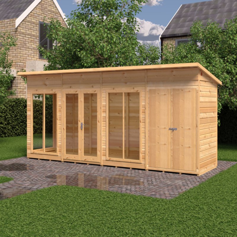 The 16 x 4 Shire Lela Summerhouse with a side shed is a large garden room. It’s a high-quality summerhouse with storage that genuinely stands out. The key features include: