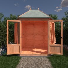The Shire Fleswick 8x6 Hexagonal Summerhouse combines elegant design with premium craftsmanship. It features T&G cladding, two opening windows, and a classic hexagonal shape. Key features include: